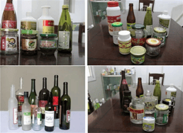 Esta imagen muestra una variedad de envases cilíndricos -botellas de vidrio, frascos plásticos, recipientes con salsas, licores y conservas-, todos listos para recibir su identidad visual. Aquí es donde el aplicador brilla: transforma un envase común en un producto con presencia, coherencia y valor de marca.